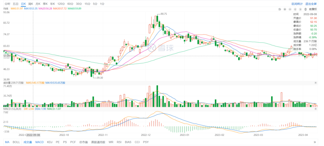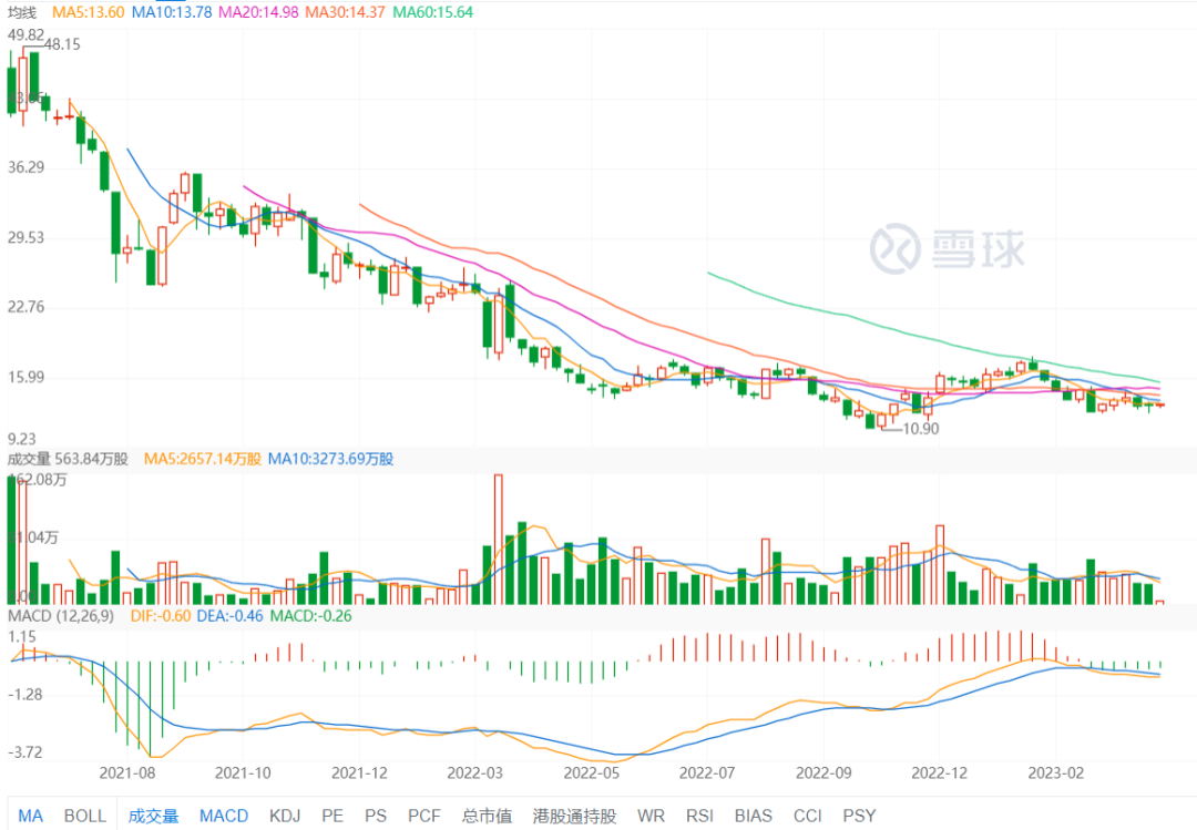 达达的股价表现就没这么优秀,自2020年11月达到历史高位后,此后达达股价不断下降,甚至在2022年全年的股价一直低于此前的发行价。